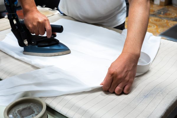 機械では行き届かない細かな部分まで、一本一本丁寧にアイロンをかけます。