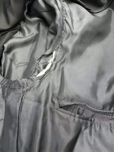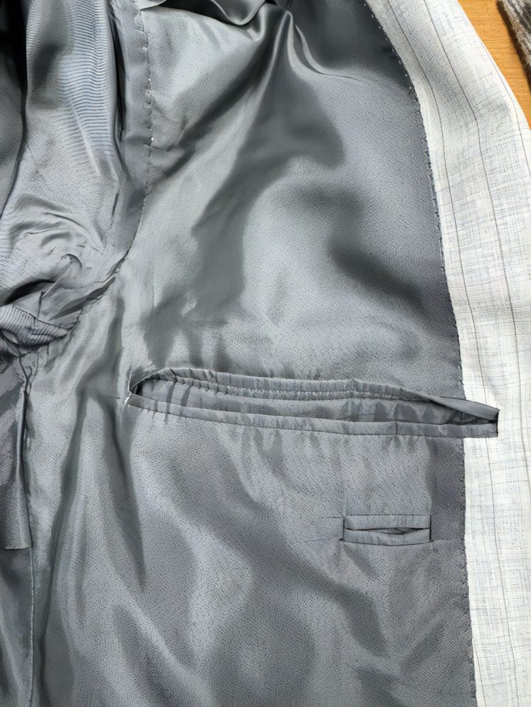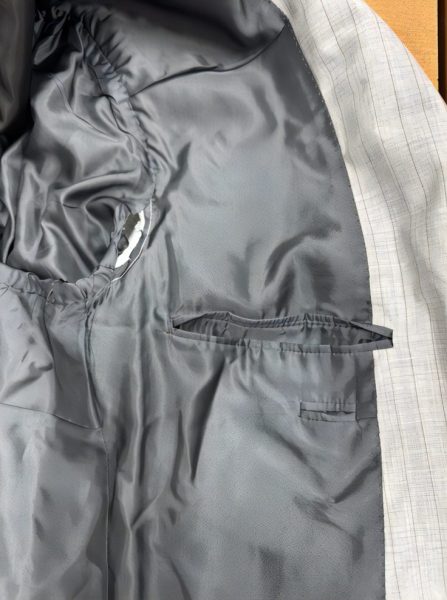 洋服のお直し スーツのジャケットの脇の裏地のホツレ 脇部分の裏地が縫い目から開いてしまったとのことで ご依頼いただきました。 <BEFORE> <AFTER> 表地には一切手を加えず、内側から自然に修復しています。見た目も着心地も元どおり。「まだ着られるのに裏地だけが…」というお悩み、諦める前にぜひご相談ください。